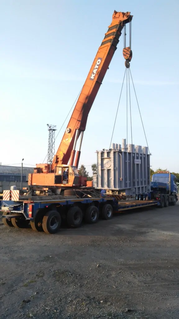 Груз прибыл по железной дороге на станцию Омск-Северный, которая не располагала технической возможностью разгрузить тяжеловесный трансформатор. Поскольку на месте выгрузки также не было соответствующей техники, мы привлекли к работе автомобильный кран KATO грузоподъемностью 120 тонн. Автомобильный кран такой грузоподъемности относится к категории «негабарит», поэтому для его передвижения по городу был разработан и согласован маршрут, повторяющий путь следования трала с оборудованием. Оба разрешения – на перевозку негабаритного груза автомобильным транспортом и движение крана – мы подписали в соответствующей инстанции в кратчайший срок. Согласованность действий, оперативная подготовка документов и своевременная подача техники для организации погрузо-разгрузочных работ и перевозки позволили решить поставленную клиентом задачу за один день.
